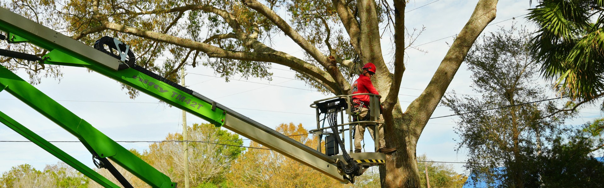 Only specially certified line clearance arborists should work near power lines. We have qualified professionals for this work and coordinate with utility companies when needed. For safety, never attempt to prune branches near any power lines yourself.
